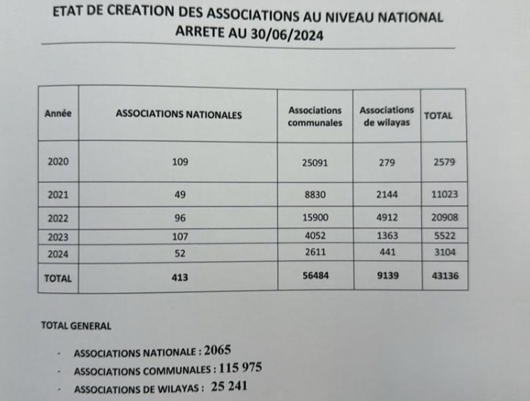 إحصائيات إنشاء الجمعيات على المستوى الوطني