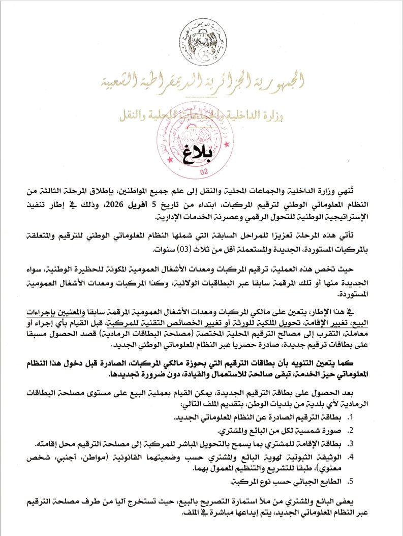 Lancement de la troisième phase du système d’information national de l’immatriculation des véhicules Communiqué
